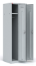 Основная секция модульного ряда. Шкаф состоит из двух боковых секций, это первая и последняя секции модульного ряда, между которыми можно вставить дополнительные секции. В каждом отделении: полка для головного убора, перекладина для вешалки и крючки для одежды, врезной замок. Шкаф может комплектоваться полками для обуви (в комплект не входят). Полимерное порошковое покрытие светло-серого цвета (RAL 7035).